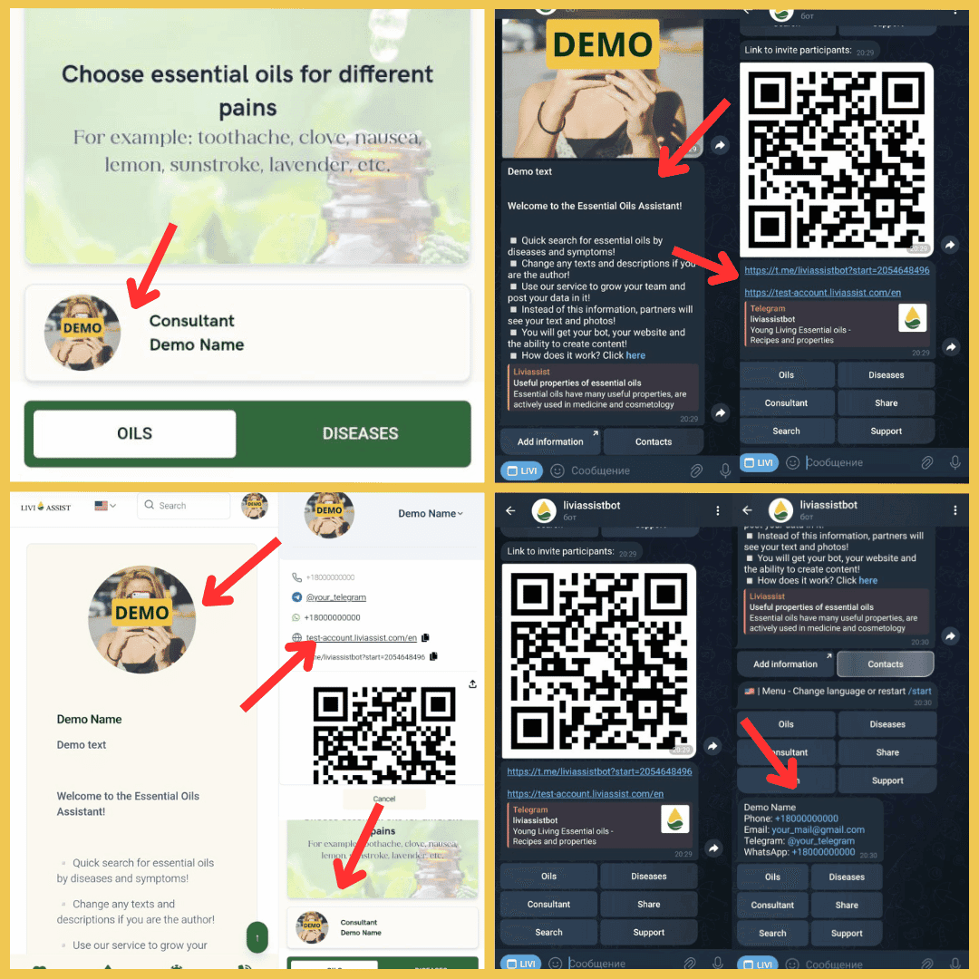 - Talk about the benefits of essential oils in your channels or social networks based on texts in LIVIASSIST and immediately share a link to the source (your website or bot)